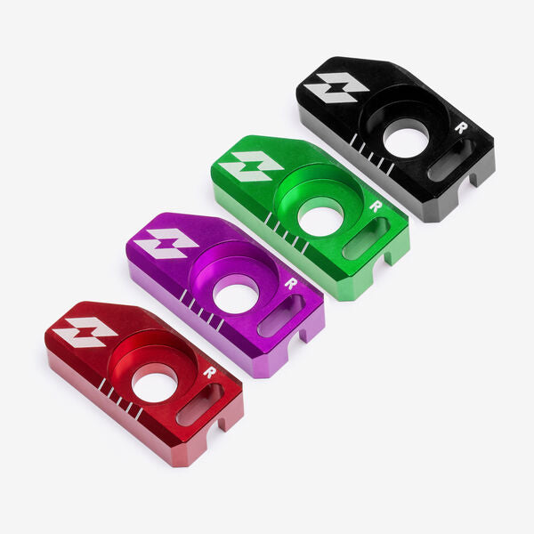 Upgrade your axle block chain adjuster to keep your chain at the optimal alignment whilst also adding a bit of style to your ride. With these adjusters, a quick turn of the adjustment screw lets you easily and precisely adjust your chain tension.