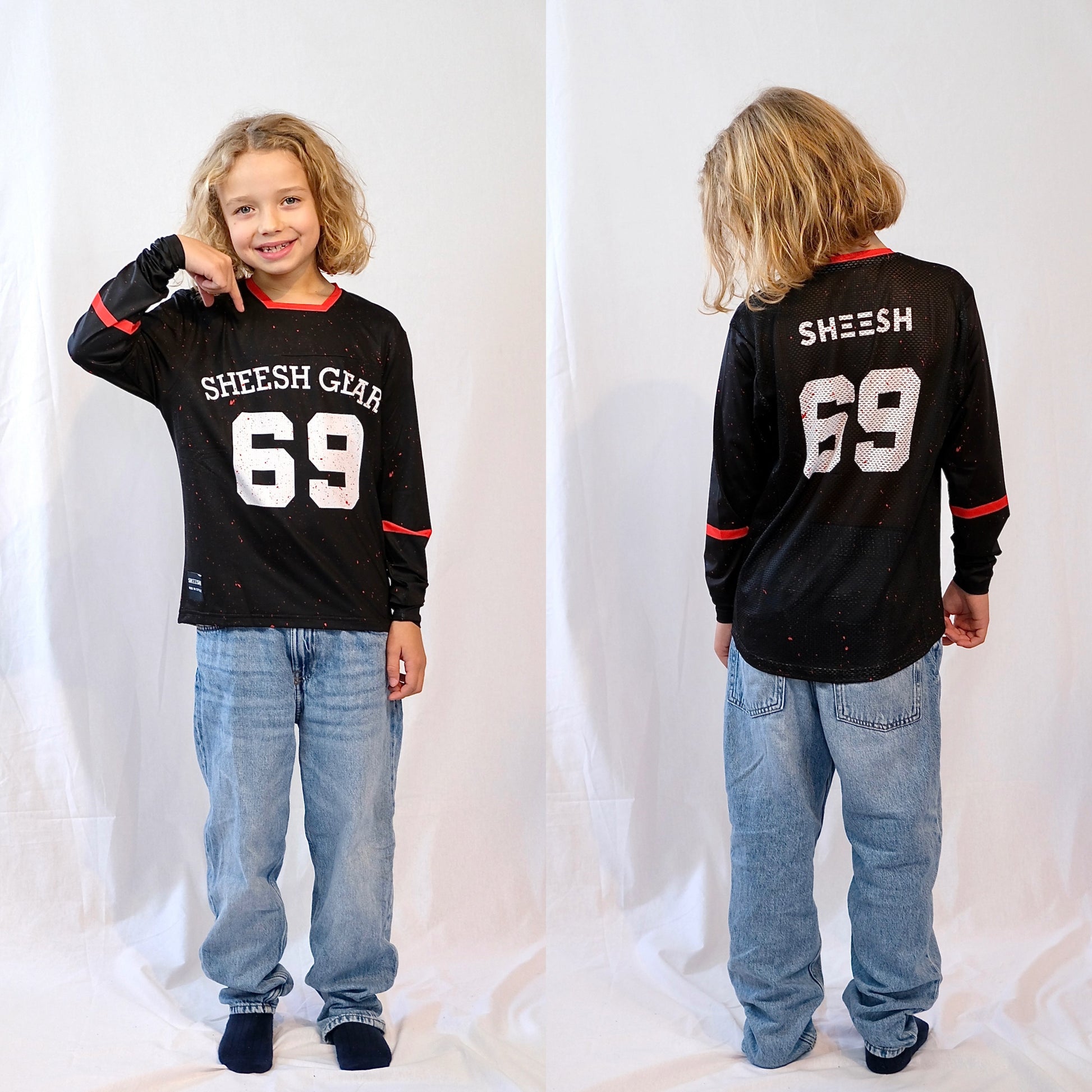 Das SHEESH KIDS 69er Partylaps Jersey verkörpert die perfekte Symbiose aus Funktionalität und Style für leidenschaftliche MTB/Downhill-Fahrer.