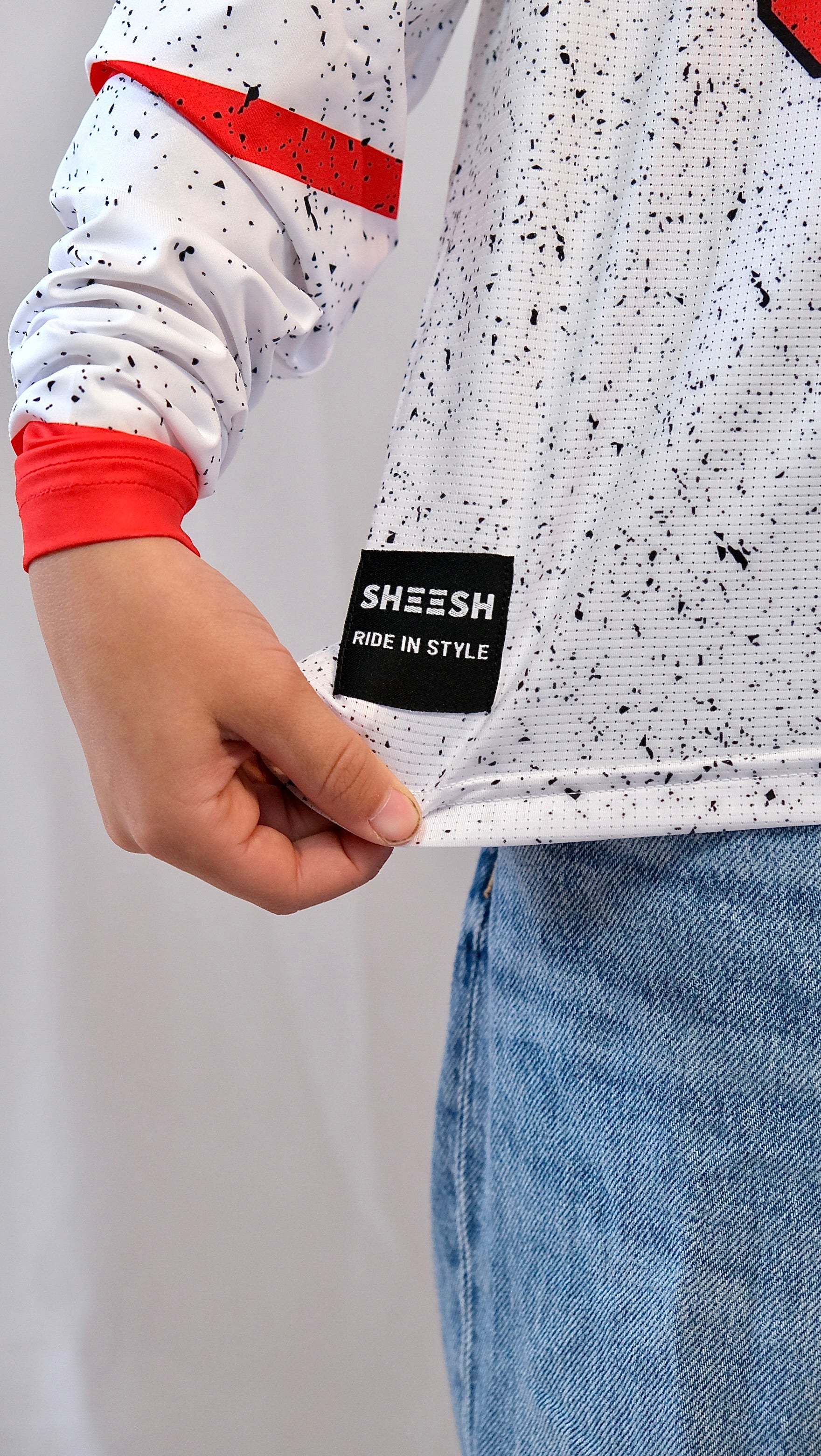 Das SHEESH KIDS 69er Partylaps Jersey verkörpert die perfekte Symbiose aus Funktionalität und Style für leidenschaftliche MTB/Downhill-Fahrer.